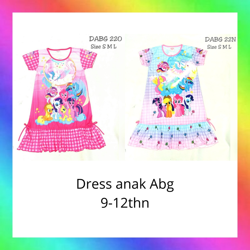 Kids mode baju daster dress anak perempuan gambar kartun printing korea .